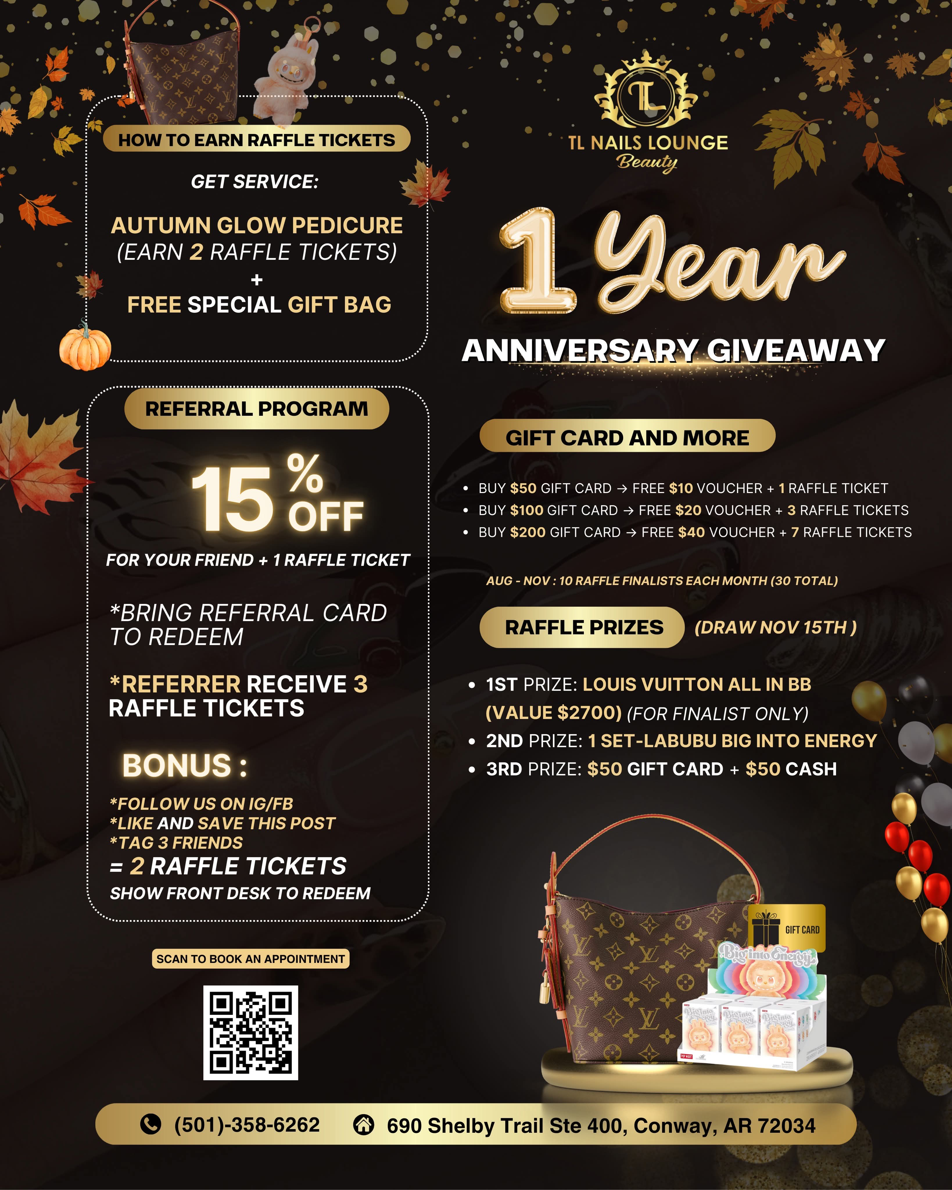 Thank you once again for choosing TL Nails Lounge Conway. We can't wait to see you at the salon and share this exciting journey with you!